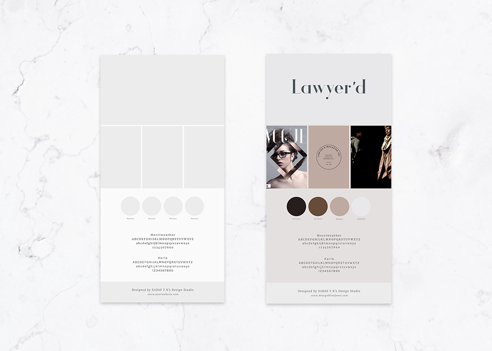 Easy to edit in Photoshop, these brand guide board templates are suited for modern and feminine brand designs. Help you showcase your design work on Pinterest, Behance, and your portfolio website.